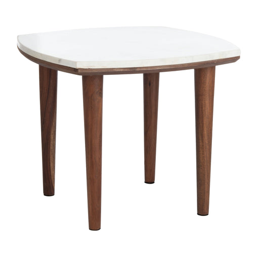 Original price $0.00Original price $0.00$210.00$210.00Current price $210.00The Lara Side Table is a striking study in mixed media craftsmanship. A clean white marble top is paired with tapered acacia wood legs in a rich wa...