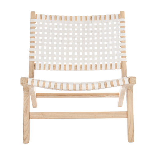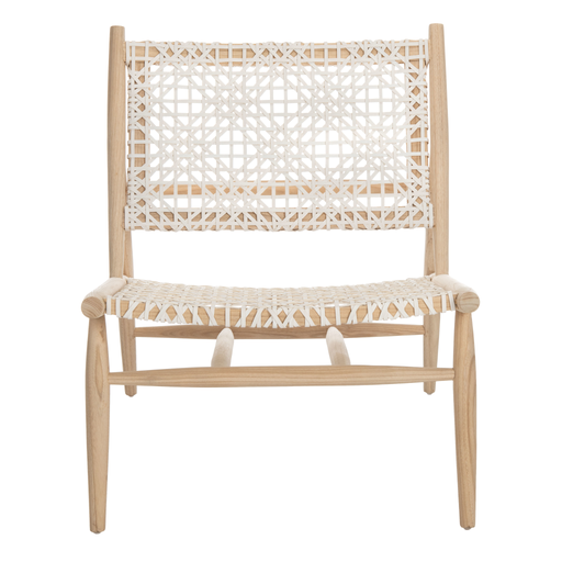 White & Natural Luna Leather Woven Accent Chair