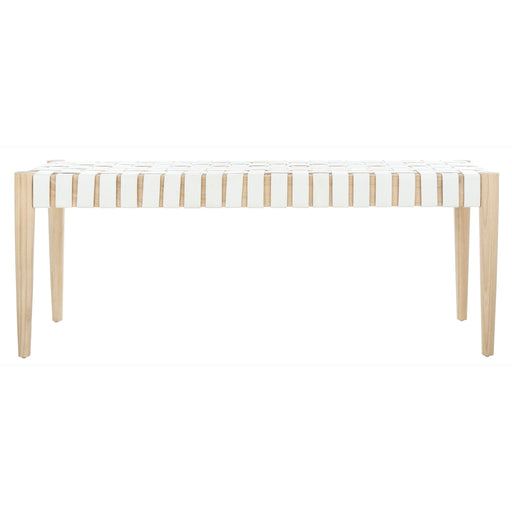 Light Oak Amalia Off White Leather Weave Bench
