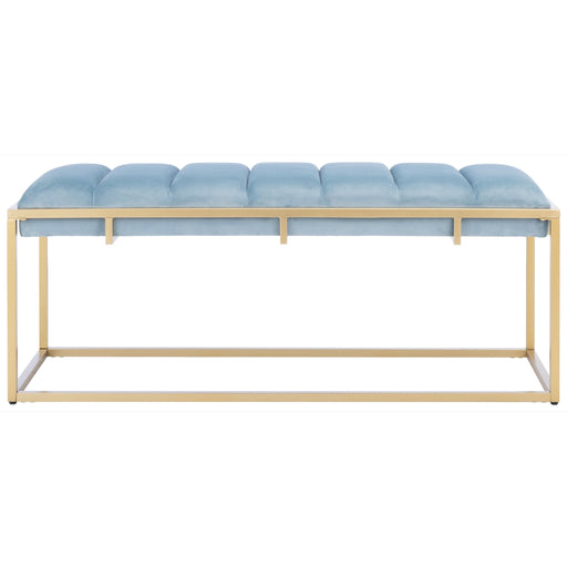 Slate Blue Velvet & Gold Thalam Channel Tufted Bench